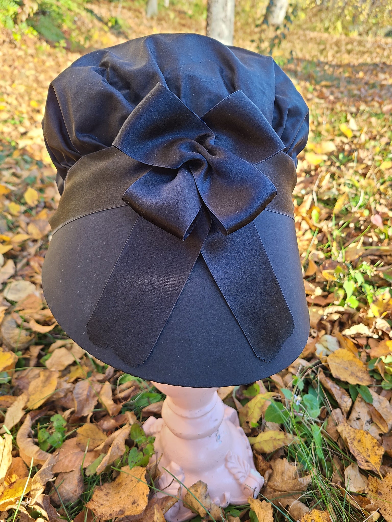 Black Silk Bonnet, Black Ribbon Trim